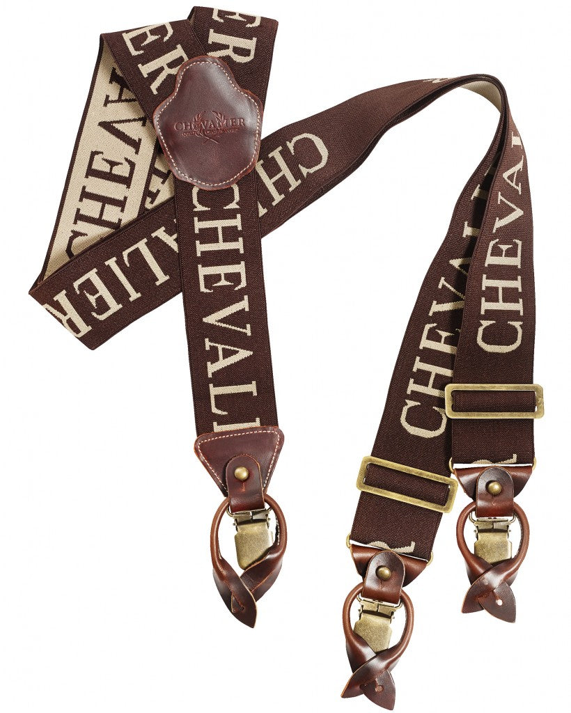 Chevalier Logo Suspenders är ett par breda och justerbara hängslen som fästs i byxorna med hjälp av metallspännen eller med knappfästen i äkta läder. Hängslena är tillverkade i 70% polyester och 30% gummi. Metallspännen och tre läderöglor för knappfäste ingår. Som ett led i vårt hållbarhetsarbete är läderdetaljerna gjorda av spillbitar från tidigare produktion. Bredd 50 mm. Artikelattribut Exkludera från marknadsföring Nej Varumärke Chevalier