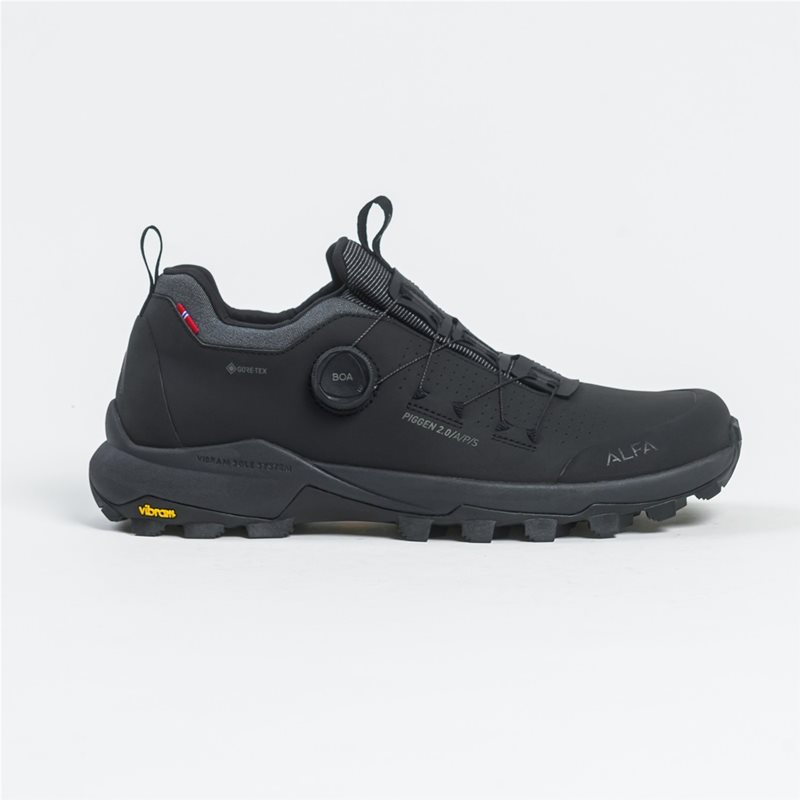 Alfa Piggen 2.0 APS GTX är en utveckling på Alfas välkända Piggen-design, förbättrad med flera uppgraderingar. Det är ett par lätta och slitstarka vandringsskor har exceptionellt grepp och dämpning vilket gör att dom passar de flesta utomhusaktiviteter i lätt terräng. Med BOA® Performance Fit-system är skon mycket anpassningsbar för att du ska kunna få en så bra passform som möjligt för optimal prestanda och stabilitet. Lästen i ergonomisk NORTIK är designad för att optimera prestanda och uthållighet under längre vandringar, vilket säkerställer lyhördhet och minimerar trötthet, medan det slitstarka, lätta och underhållsfria AlfaAir-material, förstärkt med Gore-Tex membran, ger ett hållbart, vattentätt och andningsbart skydd. Vibram Litebase ®: Minskar 30 % av den totala sulans vikt genom en minskning av sulans tjocklek med 50 % utan att offra grepp, hållbarhet eller dragkraft Vibram Megagrip ®: En gummiblandning som ger oöverträffat grepp på båda våta och torra ytor, vilket säkerställer hållbarhet och perfekt terränganpassning Vibram Traction Lug® : En innovativ design som ökar greppet och stabiliteten forma klackarna för bättre ytkontakt. Förbättra grepp och dragkraft upp till 25 %* och förbättrar ytan med 50 % Lättvikts EVA-mellansula ger exceptionell dämpning och lyhördhet, förbättrar skons övergripande komfort och smidighet Kul och veta Kombinerar Alfas vandringsexpertis med lätta, hållbara material Reparerbar design förlänger livslängden på skorna Innehåller AlfaAir-material och Gore-Tex-membran för premium prestanda NORTIK sista förbättrar lyhördheten och uthålligheten under längre vandringar Helt gummiskydd ger full täckning för att skydda känsliga delar av skon från fukt och skräp Modern Boa konstruktion Ultralätt och underhållsfri design med överlägset grepp och mikrojusterbart BOA® Performance Fit System för personlig komfort Fotavtryck : ePE Gore – Tex Återvunnet material PFAS-fri Vikt M: 398 g (EU 43) Vikt W: 326 g (EU 39)