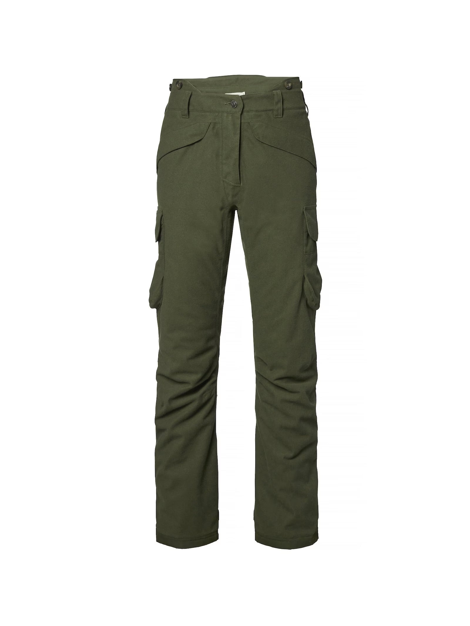 Tysta vadderade jaktbyxor – Vindtäta och vattentäta – smarta funktioner och fickor Vattenpelare: 10 000 mm Andningsförmåga: 10 000 g/m2/24h Basset Pants är ett par varma, vadderade jaktbyxor till dam tillverkade i ett mjukt borstat yttertyg av återvunnen polyester. Byxan är vindtät och vattentät med en kvinnlig passform. Byxan är mycket användbar i olika jaktsammanhang och har viktiga funktioner som: * förböjda knän för att du ska få maximal rörlighet ute i skog och mark. * Midjan är förhöjd och linningen anpassad för att göra det lätt och smidigt att fästa hängslena oavsett om du använder knapparna eller fäster i spännet. * Byxan har kraftiga hällor för bälte * Snedfickor fram försedda med dragkedja. * På benens utsidor sitter bälgfickor varav den högra har en säkerhetsficka med dragkedja. * På insidan av benen sitter dragkedjor för ventilation. * Bensluten är försedda med vattenavvisande tvåvägsdragkedjor från YKK och i nederkant förstärkta med ett tyg av Ripstop Cordura. * Byxbenens vidd är justerbar med hjälp av en hake längst ner. * Byxan har dessutom en hake på insidan av varje benslut som du kan fästa kängornas skosnören i för att hålla byxan på plats. * Vattentät gylf – dubbel frontslå och fullt tejpade sömmar * Basset jacka och byxa till dam blir tillsammans ett tyst, varmt, vindtätt och vattentätt jaktställ. Material: Foder: 100% Polyester, Yttertyg: 100% Polyester Artikelattribut Användare Dam Exkludera från marknadsföring Nej Varumärke Chevalier Lagerprofil 4