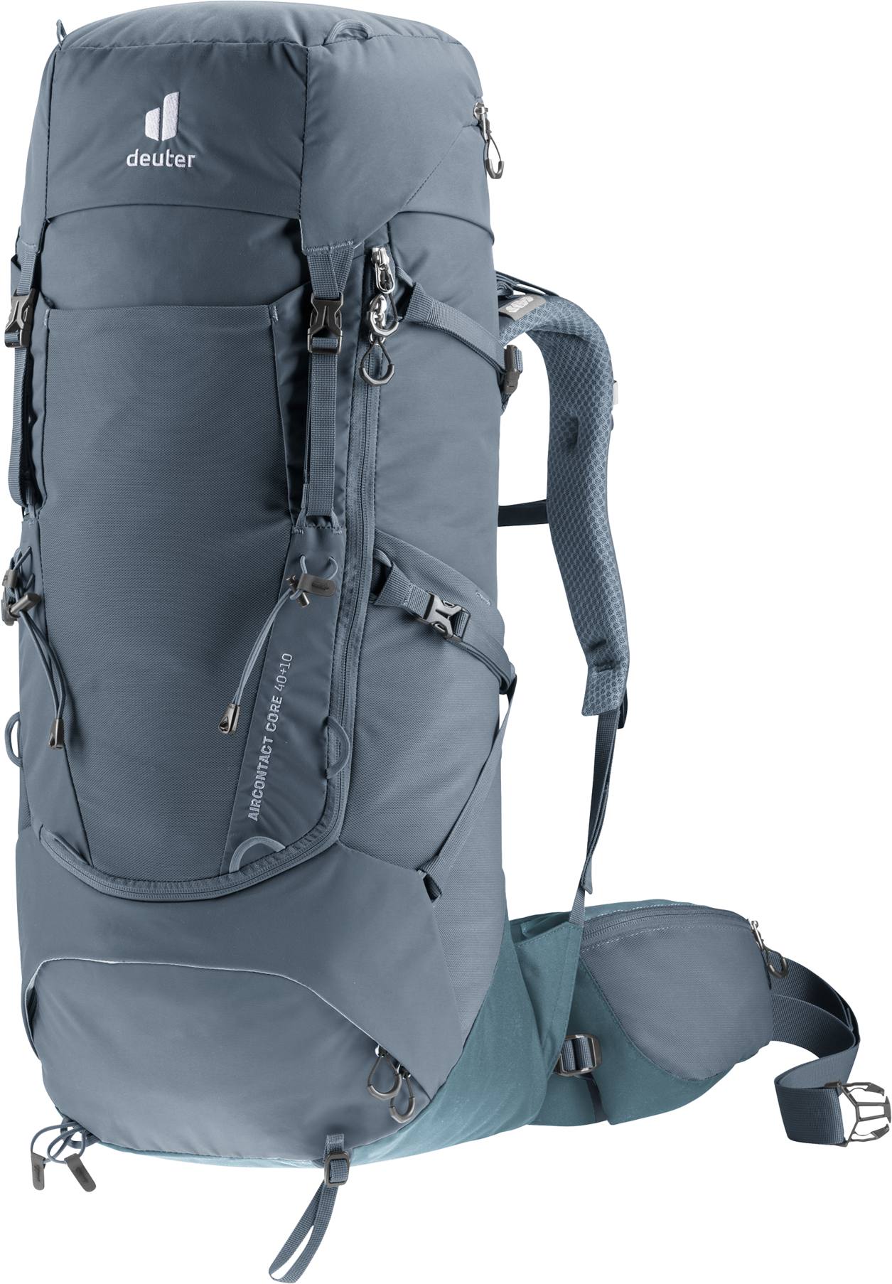 Aircontact Core-serien är bekväma att bära och har lång livslängd. Frontpanelen har en bokstav J-formad dragkedja för enkel åtkomst. Deuter -paket är kända för många detaljer, men Core-serien är något nedskuren, vilket resulterar i en lägre totalvikt. – Vanlig modell: passar användare mellan 170 – 205 cm – Tillverkarens lastrekommendation: 15 – 20 kg – Rekommenderad rygglängd: 42 – 62 cm – Steglöst justerbar rygg (VariSlide) – Avtagbart bröstbälte – Praktiska, avtagbara sidfickor – Regnskydd ingår – Kompatibel med max. 3 liters vätskepåsar – Avtagbart lock – Nedre fack med dedikerad dragkedja – Stånghållare