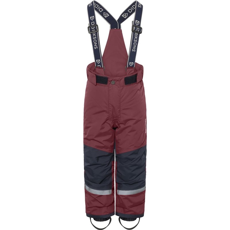 Didriksons Idre Kids Pants 6 är ett par funktionella byxor för barn, perfekta för utomhusaktiviteter året runt. Byxorna är vatten- och vindtäta med tejpade sömmar och gjorda i ett material som andas, vilket gör dem idealiska för lek i alla väder. De har förstärkningar över knän och baktill för extra slitstyrka. Byxorna är utrustade med justerbara hängslen och en elastisk midja med kardborre för optimal passform. Bensluten har elastik och justerbara kardborreband samt slitstarka fothällor i silikon för att hålla byxorna på plats. Snölås med anti-slip elastik vid bensluten förhindrar att snö och kyla tränger in. Reflekterande detaljer på benen och baktill ökar synligheten i mörker. Plagget har en namnlapp med plats för flera namn, vilket är praktiskt för den som ska ärva eller köpa begagnat. Funktionen Extend size gör att byxbenen kan förlängas upp till en storlek när barnet växer. Vattenpelare: 6,000 mm Andningsförmåga: 4,000 g/m²/24h Vaddering: 120 g/m²
