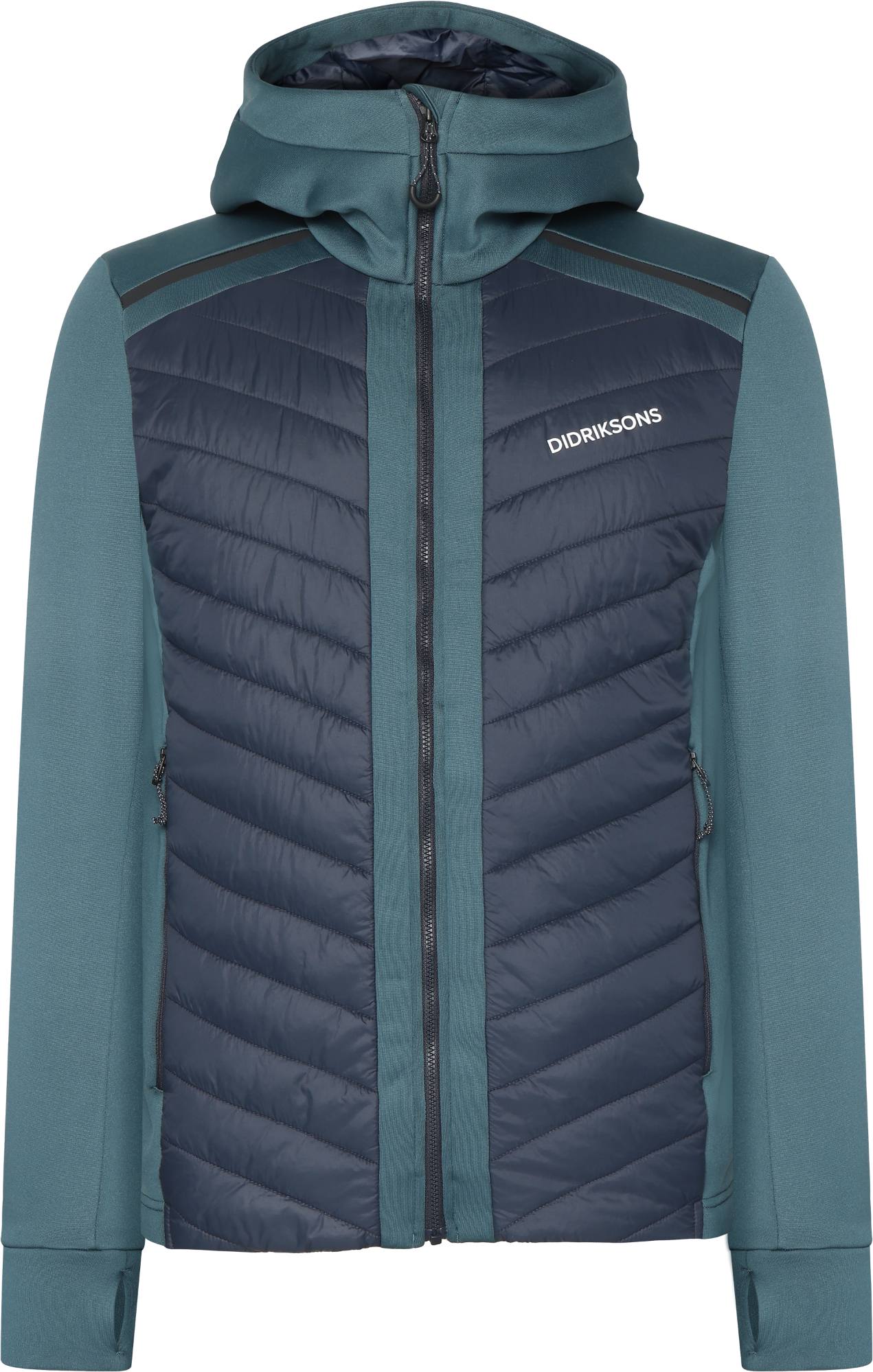 En hybridjacka är ett praktiskt val. Den förstärker en vanlig stretchfleece med isolerade paneler gjorda av tekniska fibrer, vilket gör jackan märkbart varmare. Dessa paneler fungerar också bra med en skaljacka – när den ventileras genom skalets huvuddragkedja förhindrar den extra isoleringen att kall vind når din hud direkt. Zuko-jackan kan bäras på egen hand under svala förhållanden eller som ett varmare mellanlager under en skal- eller vinterjacka. – Normal passform – Skyddskrage och huva – Långa ärmar med tumhål – Isoleringspaneler med en materialvikt på 100g/m² – Dragkedja framfickor – Reflekterande logotyp Både yttertyget och isoleringsfibrerna är gjorda av 100 % återvunnet material. Denna produkt innehåller inga PFC-föreningar. Modellen är 187 cm lång och bär en jacka i storlek M.