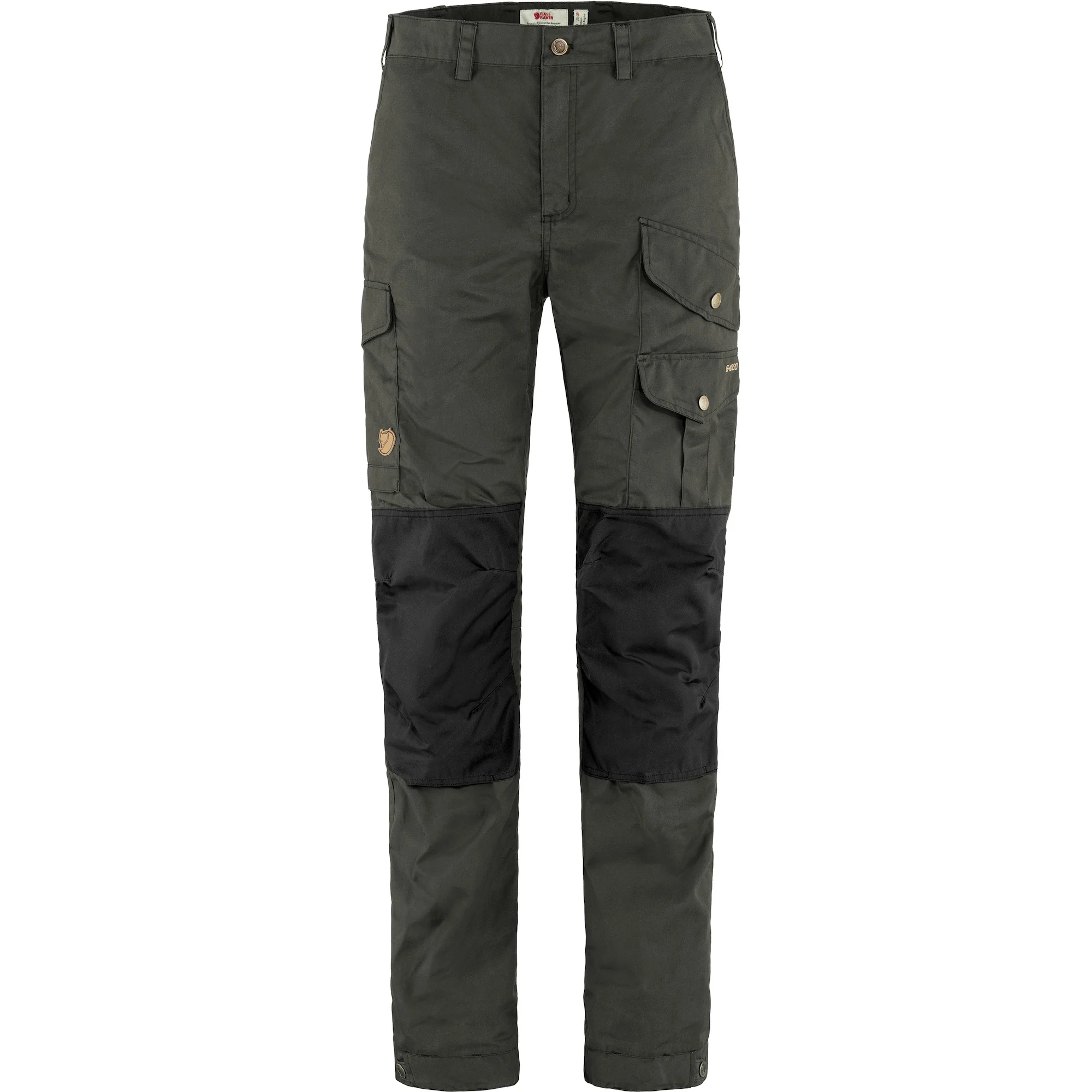 Med sin G-1000 polycotton håller Vidda Pro-byxorna längre tid i verkligheten! Tack vare kombinationen av polyester (65 %) och bomull (35 %) torkar tyget faktiskt snabbare än många syntetmaterial. Denna modell har inga stretchpaneler, vilket innebär att den har lång livslängd. Huvudbilden visar den färg som valts för att läggas till i kundvagnen. Detaljbilderna kan visa en annan färg. Vidda Pro representerar ett mycket traditionellt Fjällräven tillvägagångssätt genom att erbjuda stor hållbarhet, robusthet och vindskydd. Inte konstigt att de är ett favoritval för många vandrare och friluftsentusiaster. På sommaren skyddar det täta, vaxbehandlade tyget mot myggbett. På hösten och våren fungerar materialet bra på egen hand, och på vintern kan du bära dina favoritlångkalsonger under. 2 framfickor, 2 cargofickor, yxficka, kartficka och multiverktygsficka – Justering av elastiska benslut – Knäfickor för knäskydd (ingår ej) – Formade knän – Förstärkningar vid knän och säte – Elastiska justeringsremmar med tryckknappar i bensluten – Stövelkrokar i bensluten Denna produkt är behandlad med [Greenland Wax](/greenland-vaha/). Köp ett paket av detta vax till byxorna för framtida underhåll! Vaxet gör att du kan hålla tyget mycket motståndskraftigt mot vind och fukt.