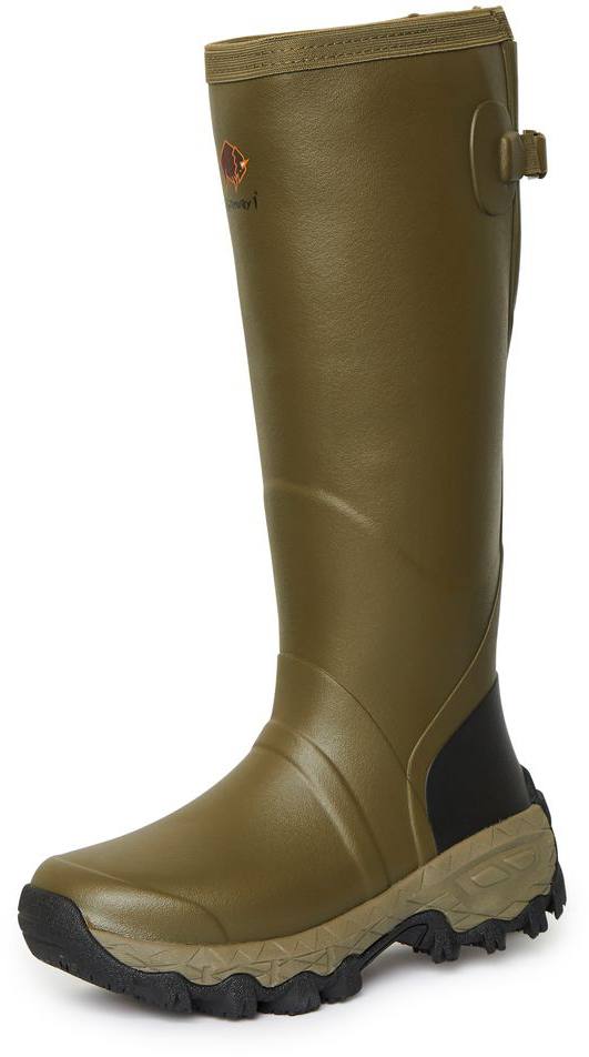 Ett ordentligt skaft, grov yttersula och mellansula lämpar sig för långa dagar utanför vägen. Ett no-nonsense val för frekvent användning. Tillverkaren rekommenderar att denna modell används ner till +5ºC. Denna vildmarkskapa modell är byggd med en mycket stark vulkaniserad naturgummiblandning med det registrerade varumärket ”G1® 70”. – Vanlig skaftdiameter, med justering för stora kalvar – Snabbtorkande tunt fodertyg – Stötdämpande mellansula – gångkänslan är mycket mjukare än hos många traditionella gummistövlar – Mellansula TPU skaft – G1®-stage3™ innersulor: PU-kropp, lätt tygyta, anatomisk form – Slitstark gummiblandning för lång livslängd – All terrain gripper 2.0 yttersula med en höggreppsblandning – Heel kicker för enkel användning