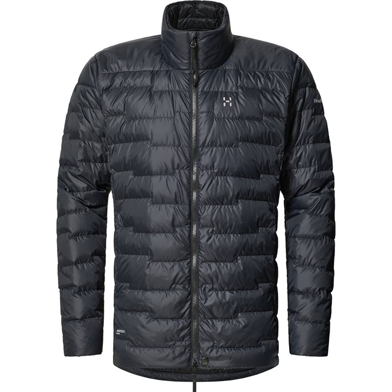 Haglöfs ROC Flash Down Jacke t är en lätt och värmande teknisk jacka för dina absolut tuffaste bergsaktiviteter. Uppdaterad med ett ikoniskt nytt utseende med utmärkande förskjuten kviltning och fungerar som ett mångsidigt isoleringsplagg som uppfyller kraven från klättring och bergsklättring. Det lätta Pertex® Quantum-yttertyget skyddar dig från väder och vind samtidigt som det tillgodoser ett bekvämt luftflöde. Jackan är fylld med en strategisk kombination av H DOWN Gold och syntetisk MIMIC-tygisolering i de områden som är benägna att skava. Isoleringen sträcker sig till den höga ståkragen och håller din hals och haka skyddad från kalla bergsvindar. Lätt och slitstarkt yttertyg i 100 % återvunnen polyamid Isolerad med dun med fyllningsgraden 700 CUIN och tygisolering i de områden som är benägna att skava Förskjuten baffelkviltdesign minimerar köldpunkter Två handfickor med blixtlås och en säker innerbröstficka Dunfylld justerbar fåll Hög ståkrage med inbyggt hakskydd Dolda elastiska ärmslut Tvåvägsblixtlås fram med dunisolerad vindslå Längre fåll för extra täckning Används som ytter- eller mellanlager 408 g/357 g