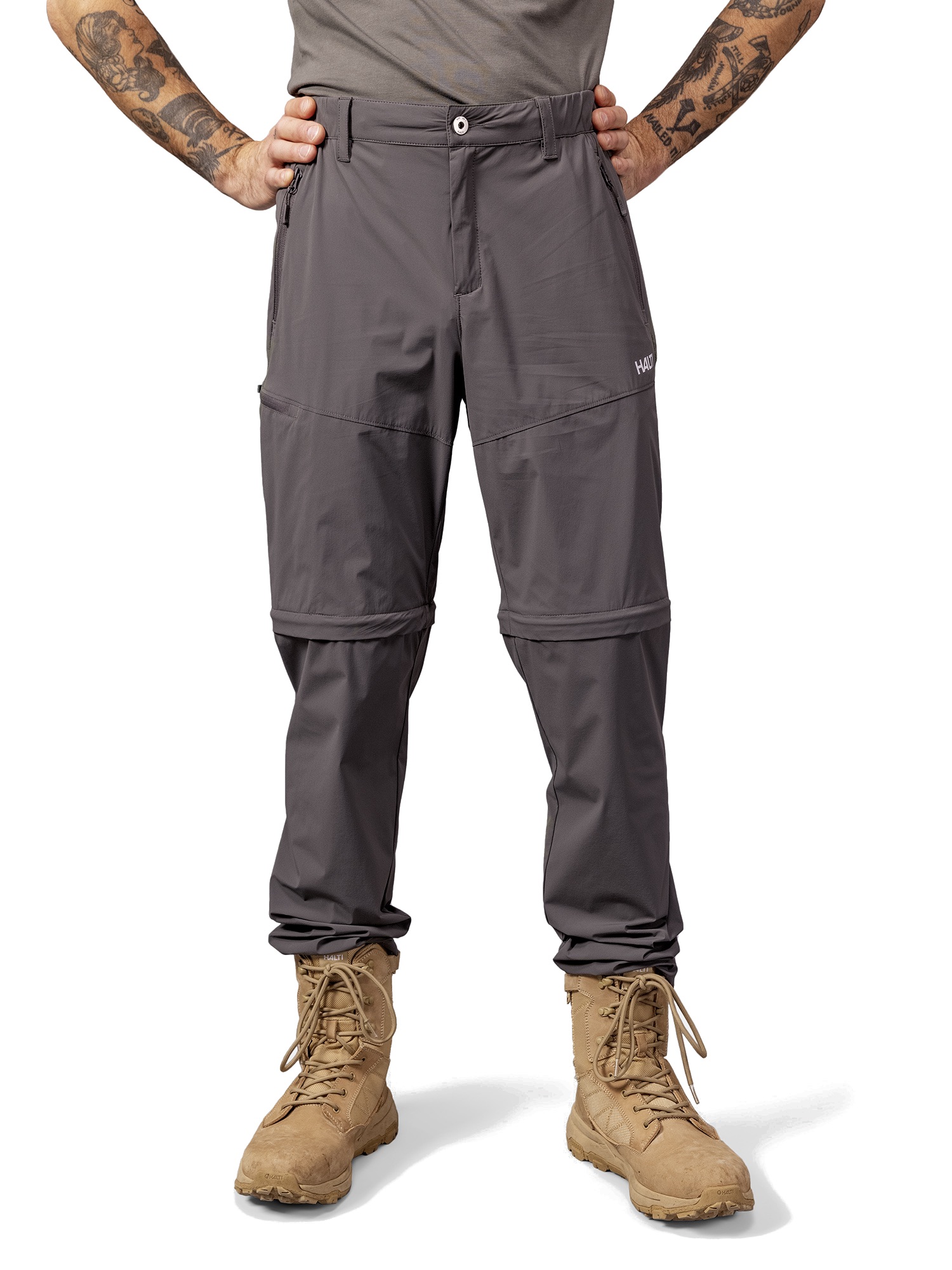 Haltis Pallas-produkter har varit en riktig succésaga: Pallas byxor och jackor har tusentals nöjda användare. Denna modell har dragkedjor ovanför knäet, vilket gör att du kan växla mellan byx- och kortläge. Cool-versionen av X-Stretch-tyget är optimerad för sommarbruk. Det känns behagligt luftigt och torkar mycket snabbt både efter användning och efter tvätt vid behov. Tyget är också UPF90+-klassat, en nivå som är bekant från arbetskläder. Använd Pallas Cool Stretch Zipoff Pants som sommarbyxor för allmänt bruk, vid vandring och andra utomhusaktiviteter. – Normal passform – Bälteshällor, välj ett lämpligt bälte från vårt [Aracade-bältessortiment](/arcade/) – Handfickor och lårficka, alla med dragkedjor – Ultraviolett skyddsfaktor 90+ – Justerbar resår i midjan – Reflekterande detaljer – Växtbaserad smuts- och fuktavvisande Bionic Finish Eco-behandling – Maskintvätt 30°C
