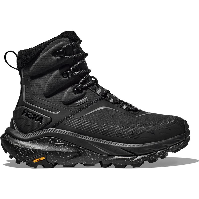 Hoka Kaha 2 Frost GTX är den ultimata kängan för vintervandringar, konstruerad för att ge överlägset skydd och komfort i de mest utmanande väderförhållandena. Med ett medelhögt skaft och ett vattentätt GORE-TEX-membran är du redo att möta både snö och slask utan att behöva oroa dig för att bli blöt. Med en isolering som består av PrimaLoft® Gold, håller Kaha 2 Frost GTX dina fötter varma och torra även när temperaturen sjunker rejält, medan en reflekterande aluminiumfolie i innersulans botten hjälper till att bibehålla kroppsvärmen och samtidigt skydda mot att kyla sipprar in underifrån. Kaha 2 Frost GTX kombinerar robust funktion med hög stabilitet tack vare Hokas MetaRocker™-design och Hubble® Heel med SwallowTail™-konstruktion, vilket ger en jämn rullande rörelse i varje steg och minimerar belastningen på fötterna under långa vandringar. Yttersulan i Vibram® Megagrip erbjuder ett oslagbart grepp, oavsett om du rör dig över is, snö eller hala stenytor, vilket gör skon idealisk för varierade vinterunderlag. Med 91% återvunnen polyester ripstop-mesh i konstruktionen, är denna vandringskänga dessutom ett hållbart val för den miljömedvetna äventyraren. Dragfliken baktill gör det enkelt att ta på och av kängorna, och de välplacerade snörningarna ger en justerbar passform som håller dina fötter på plats. Oavsett om du vandrar i skogen eller tar dig över frusna stigar, är Kaha 2 Frost GTX en pålitlig följeslagare genom vinterlandskapen. Specifikationer: Vattentätt GORE-TEX-membran: Skyddar mot väta och håller fötterna torra 400g total isolering: Utformad för kalla förhållanden, ner till -32°C PrimaLoft® Gold-isolering: Ger värme även i fuktiga förhållanden 91% återvunnen polyester ripstop-mesh: Slitstarkt och hållbart material MetaRocker™ och Hubble® Heel med SwallowTail™-design: För stabilitet och komfort vid långa sträckor Vibram® Megagrip yttersula: Ger ett säkert grepp på hala underlag Reflekterande aluminiumfolie i innersulans botten: Bibehåller kroppsvärme och skyddar mot kyla underifrån Medelhögt skaft och justerbar snörning: Optimal passform och stöd Dragflik baktill: Enkel att ta på och av
