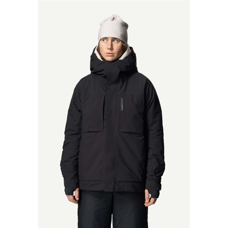 I utvecklingsarbetet för Fall In Jacket II dam var målet att ta känslan i en varm, fodrad jacka till nästa nivå. För att uppnå känslan av att svepa in sig i ett varm, fluffigt moln använder vi bara mjuka, tysta och stretchiga tyger. I kombination med det lätta och varma fodret från Primaloft® får du en vinterjacka som känns som en dröm och gör samma jobb som en betydligt tyngre och bylsigare jacka. Yttertyget heter Spheric 2L Hardshell och är ett helt vattentätt skaltyg som håller vatten, vind, snö och allt däremellan ute. Jackans foder är Primaloft® Silver, ett lätt, varmt och mycket komprimerbart syntetiskt foder. Vi använder syntetisk padding för dess funktionsfördelar men också för att vi inte vill stjäla fågelfjädrar i onödan för att värma oss själva. Jackan har en stor huva med två justeringar och värmebarriärer kring halslinningen och nedre fållen. Du har också alla fickor som kan önskas: Två externa bröstfickor, två sidofickor, en innerficka på bröstet och en större nätficka. Om du letar efter en egen kokong som håller dig varm i alla väder så är Fall In Jacker dam ett perfekt val. De flesta av våra kunder använder den till vardags, men den fungerar precis lika bra för skid- eller snowboardåkning. De cirkulära materialen och den vattenavstötande behandlingen helt fri från PFAS adderar ett extra lager av komfort för den som är medveten om sitt miljömässiga avtryck. Avslappnad passform Stor, justerbar huva Vind- och vattentät Fodrad med Primaloft® Silver 120 g 2-vägsdragkedja fram Värmebarriärer i hals och nedre fåll 4 utanpåfickor och 2 innerfickor Dragsko i nedre fåll Tillverkad i återvunna och återvinningsbara material PFAS-fri vattenavstötande impregnering Vikt medium dam: 882 g Tyger producerade i Japan, Taiwan och Kina Plagg sytt i Estland