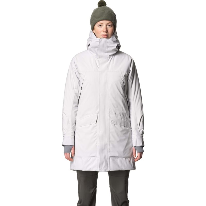 Fall In Parka är en isolerad vinterjacka i klassisk parkamodell, utvecklad för att ge maximalt skydd mot kyla, vind och nederbörd. Trots sin värmande konstruktion är jackan förvånansvärt lätt och följsam, tack vare noggrant utvalda material med låg miljöpåverkan. Yttertyget består av Spheric 2-layer Hardshell, tillverkat i återvunnen polyester och laminerat med Atmos™, ett hydrofilt polyestermembran helt fritt från PFAS. Den vattenavvisande ytbehandlingen (DWR) är också PFAS-fri. Resultatet är ett tyst, mjukt och vattentätt tyg som andas väl och känns behagligt i rörelse. Jackan är fodrad med Primaloft® Silver Insulation Hi-Loft Ultra, ett syntetiskt isoleringsmaterial med hög värmeeffekt och god fukttransport – särskilt effektivt i fuktiga förhållanden. Fodret är tillverkat av återvunna fibrer och är helt återvinningsbart. Designen inkluderar en generös stormhuva, tvåvägsdragkedja, flera praktiska fickor och en längre skärning som skyddar effektivt mot väder och vind. Jackan är framtagen för vardagsbruk men fungerar även utmärkt för vintersport som skidåkning eller snowboard. När jackan är utsliten kan den lämnas tillbaka till Houdini för återvinning – ett steg mot en mer cirkulär produktlivscykel. Avslappnad passform Stor huva med justeringsmöjlighet Dragsko i midjan för anpassad silhuett Vind- och vattentätt material Fodrad med Primaloft® Silver Insulation Hi-Loft Ultra Låg vikt Tvåvägsdragkedja framtill Integrerade muddar i ärmsluten Rymliga framfickor Generös innerficka i mesh Tillverkad med återvunna och återvinningsbara fibrer Tyg producerat i Japan Plagget är sytt i Estland PFAS-fri Vikt: 818 g