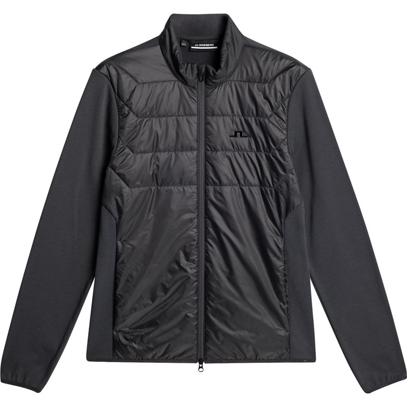 J.Lindeberg Gregory Hybrid Jacket är en tunnare jacka med paneler i merinoullblandning, insida i fleece och en vattenavvisande finish. Jackan kan bäras som ett eget lager ett som ett mellanlager när det är lite kyligare i backen. Naturligt vattenavvisande merinoullblandning Borstad insida Bridge-logotyp på insidan Band på ärmarna Tvåvägs dragkedja fram Sidfickor med dragkedjor Bridge-logga på bröstet och i nacken