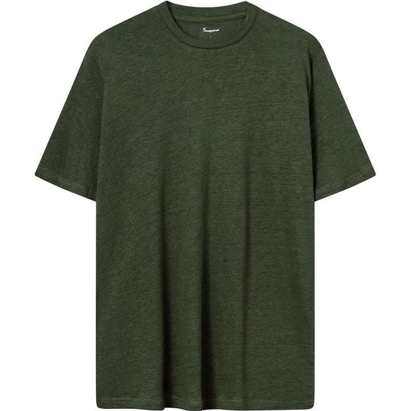 KnowledgeCotton Apparel Linen T-Shirt har en avslappnad passform med något nedhasade axlar och en rundad halsringning. Tillverkad av 100 % ekologiskt linne erbjuder den en otroligt mjuk känsla, naturlig melerad färgning och är ett perfekt tillskott till en bekväm och medveten garderob.