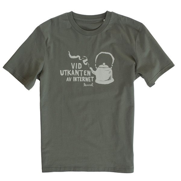 Lemmel Kaffes ”VID UTKANTEN” är en mjuk och skön t-shirt tillverkad av ekologisk bomull med ett stort tryck på bröstet.