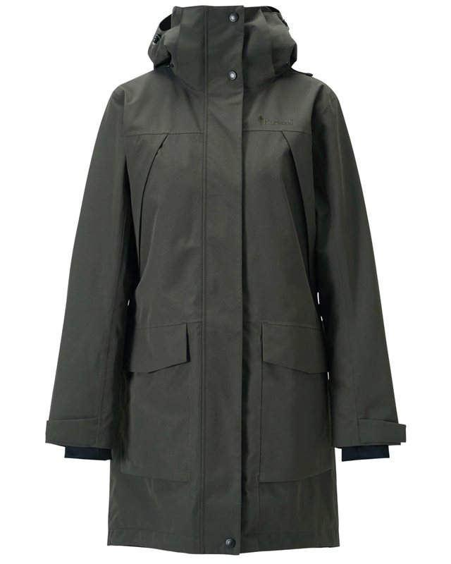 Pinewood® Regnparkas för dam är en stilfull och funktionell jacka som skyddar dig mot både vind och regn tack vare sitt vind- och vattentäta material med tejpade sömmar. Tygets 2-vägsstretch och höga andningsförmåga säkerställer komfort även vid rörelse. Parkasen är utrustad med en avtagbar och justerbar huva, med förstärkt skärm för extra skydd mot regnet. För optimal passform kan ärmsluten, midjan och fållen justeras, och jackans tvåvägsdragkedja samt magnetiska knäppning på knappslån gör den praktisk att använda. Med detaljer som fleecefodrad krage, handvärmarfickor, reflexer och flera rymliga fickor, är detta ett perfekt plagg för både stad och natur. Specifikation Tejpade sömmar Avtagbar huva Vind- och vattentätt membran Handvärmare fickor Justerbar midja BIONIC-FINISH® ECO vattenavvisande behandling Justerbar huva Material: 100% polyester Vikt: 1050g (Storlek M / 38)