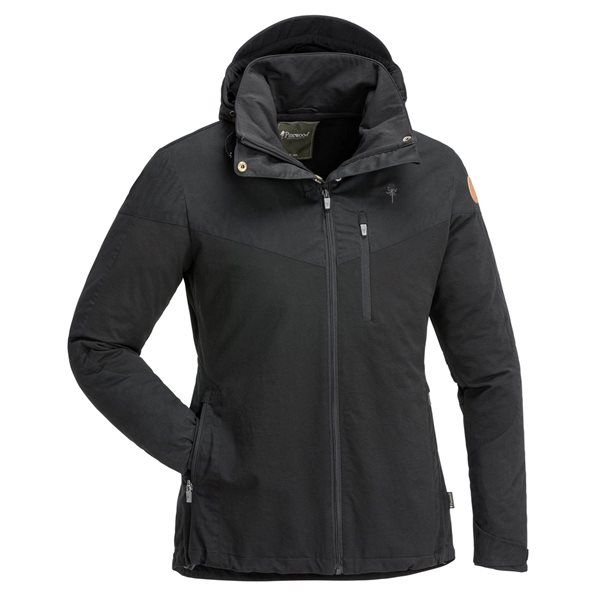 Pinewood Womens Finnveden Hybrid Jacket är en följsam och mångsidig friluftsjacka i dammodell med outstanding komfort och hög stretch. Fodrad med luftig High-Ventilation™ mesh foder för god luftcirkulation och värmeisolering. Jackan har vaxade partier längs axlar och ärmar, resten med hög stretch för att du ska kunna använda den mycket och länge. En bekväm jacka att bära i rörelse och vid aktivitet. Försedd med avtagbar och reglerbar huva med skärm. Rymliga fickor med dragkedja. Samt något tightare passform. Specifikationer Hög stretch Vaxad yta Vattenavvisande egenskaper Avtagbar huva med skärm Tightare passform 1 bröstficka, 1 innerficka, 2 framfickor Märke i syntetiskt läder Eco Friendly Treatment: Bionic Finish® Eco – Ekologisk fluorkarbonfri impregnering Vikt: 920 g (storlek M) Material: 96% Polyamid, 4% elastan. Tyg 2: 64% polyester, 34% bomull, 2% elastan. Foder 100% polyester.