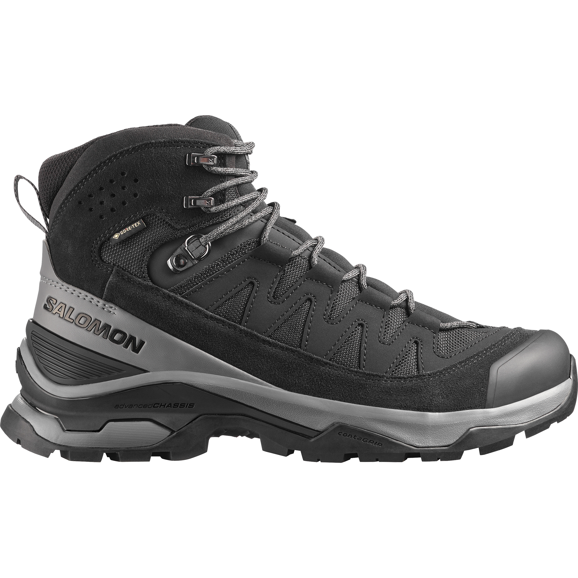 Salomon Quest Echo GTX vandringsskor för herr är ett mångsidigt val som passar mellan robusta vandringskängor och lätta terränglöparskor. Den välkända 4D Advanced Chassis-strukturen som finns i många Salomon skor ger precis rätt mängd stöd, medan SensiFit-konstruktionen garanterar komfort. Dämpningen som används i den här modellen är optimerad för promenader, oavsett dagens längd, och känslan är fast snarare än alltför mjuk, vilket inger förtroende i teknisk terräng. Använd dina Quest-skor för vardagliga utomhusaktiviteter och helgutflykter – och varför inte ens för längre vandringar! Standard Salomon -läst: något smal – Ovanmaterial i läder och slitstarkt textil Vattentätt Gore-Tex ePE-membran, nu tillverkat utan PTFE, håller vatten ute – Fallhöjd: 12 mm – Kragen hjälper till att leda vatten som rinner ner i regnbyxorna till utsidan av skorna – OrthoLite-inläggssulor är lätta att ta ut för att vädra i slutet av dagen EnergyCell-dämpning All Terrain Contagrip-yttersulor presterar bra på våta, torra, hårda och mjuka ytor Lätt tåhätta för skydd mot stenar Quest är en lättskött produkt. Rengör skorna med ljummet vatten och ge dem då och då en skvätt [Nikwax Läder- och Textilvård](/kangas-nahka/).