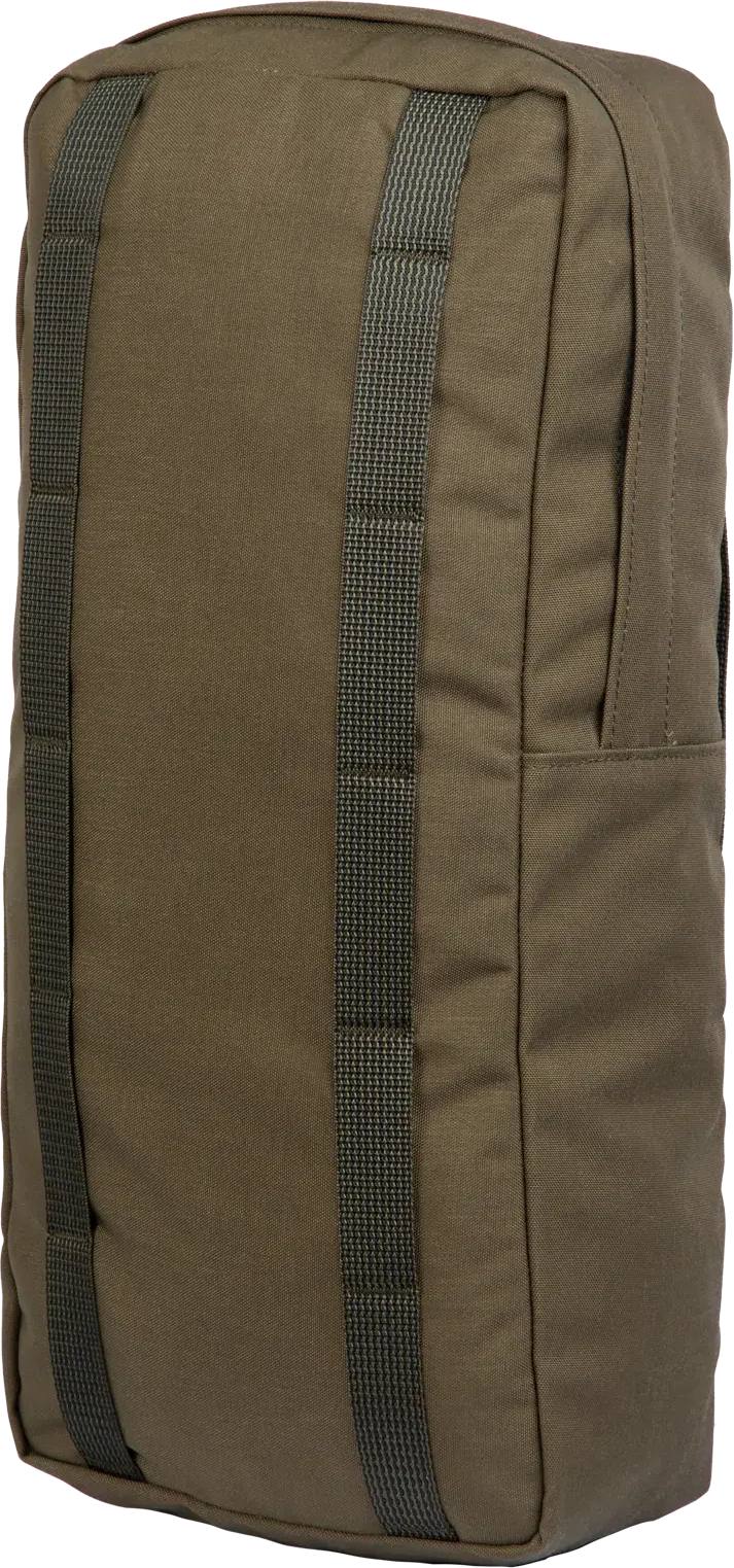 Bakpanelen har PALS-kompatibla fästen. Du kan skjuta in ryggsäckens sidokompressionsremmar under det frammonterade bandet. Denna 12-litersmodell har ett 5 brett PALS-fäste. Denna storlek är det bästa valet för 70 till 100 liters förpackningar. PALS-fästena lämnar en 13 cm bred korridor mellan fickan och din väska, vilket gör det möjligt att bära fiskespön, en yxa etc. – Huvudtyg: 500 denier Cordura, 100% polyamid – Foder: 210 denier polyamid – 25 mm bred polyesterväv – Enkel innerficka – Dragkedja med flik – Inre D-ring för att klippa fast småsaker – Platt innerficka baktill – Botten och sidorna är förstärkta med ett linertyg – PALS-kompatibel – Genomföring och hål i botten för dränering – 5 års garanti mot brister i material och tillverkning – Tillverkad i Finland och Estland Alternativa förpackningsexempel på användning av tillverkaren: – Stor presenning, hängmatta, täcke och tillbehör – Lätt pufferjacka och byxor – Trangia 27-serien spis, bränsle och mat – Jetboil, gaspatron, vatten och mat – Flera dagars mat och snacks – En veckas baslager, underkläder och strumpor – Alla möjliga större redskap och verktyg