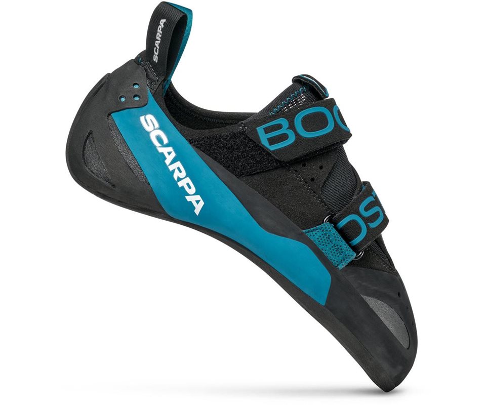 Aggressiv sko för minimala fotgrepp – uppdaterad och förbättrad inför 2021 Ett äss i rockärmen för klättring på sva och andra svåra leder med pyttesmå lister. Det här är i princip den enda skon bland Scarpas performance-modeller som har så styv, stödjande sula. Allt för att du stabilt ska kunna balansera på de jävligaste av smågrepp. Den styva sulan matchas av en rejäl spänning som Scarpa kallar för V-tension. Helt enkelt för att den är konstruerad som ett V, som håller ihop skons nedåtböjda, asymmetriska form under klättringen, så att du faktiskt får hjälp av de egenskaper du köpte skon för. Till skillnad från vissa andra dojor blir den här inte slapp och lelös över tid utan behåller sin aggressiva form. Ovandelen må vara i syntet men tåpartiet är gjort av läder, som formar sig efter just din tå och ger bra passform och kontakt med klippväggen. Från och med 2021 är hälen konstruerad enligt Scarpas Pressure Absorbing Fit, eller PAF-system. Det håller spänning även i hälen, vilket dels sprider ut kraften från hälen över foten, men också gör att hälen sitter bättre och inte glappar på foten eller vid hälsenan. Hela poängen är att skons sula, från häl till tå, funkar som en brygga fram till tårna där allt fokus ligger. Skon är flexig nog att tillåta dig att smeara dock och det är ju hela meningen med Boostic. Du ska kunna ta dig uppför väggar som i icke-klättrares ögon ser helt kala ut. Du ser och känner däremot små håligheter, kanter, inåt- och utåtbuktningar och smearar dig fram emellan dem där det är just… kalt.