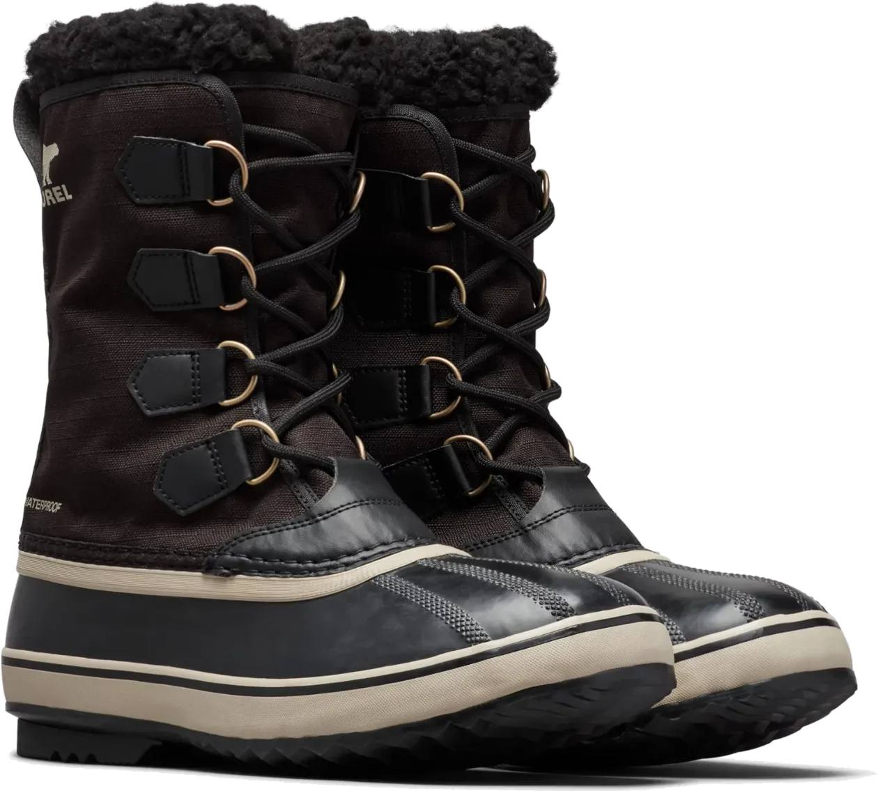 US storlek. Sorel 1964 Pac Nylon – En lätt men varm vinterkänga för män. Den relativt tunna sulan (jämfört med kraftiga vinterstövlar) gör denna nylonversion lätt att strosa runt i. Ovandelen är vattentät canvas. Grundidén med den ursprungliga ”duck boot”-designen finns i 1964 års PAC: den nedre delen, som är mest utsatt för vatten, är gjord av gummi, medan skaftet är gjort vattentätt med behandlat läder. Eftersom denna modell är designad för vinterbruk ingår en avtagbar, tvättbar 9 mm tjock innerstövel av teknisk filt. – Relativt bred modell – Nedre delen av 100% vattentätt gummi – Ovandelen har en Sherpa Pile snömanschett – Avtagbar 9 mm tjock innerstövel i filt
